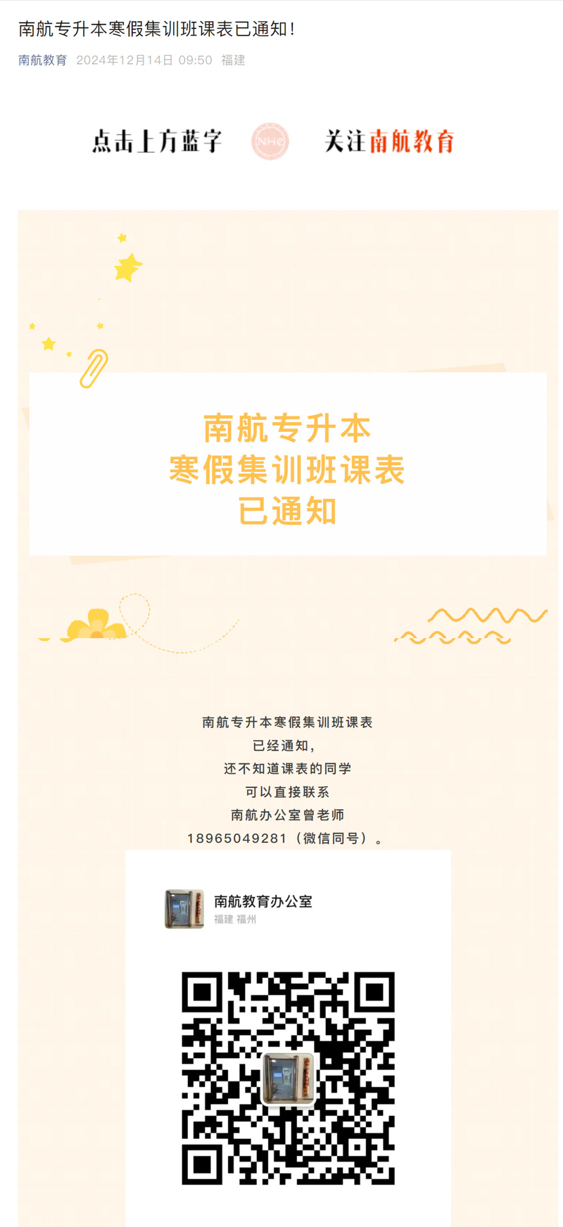 南航专升本寒假集训班课表已通知 Post By:2024-12-20 10:29:25 [只看该作者]